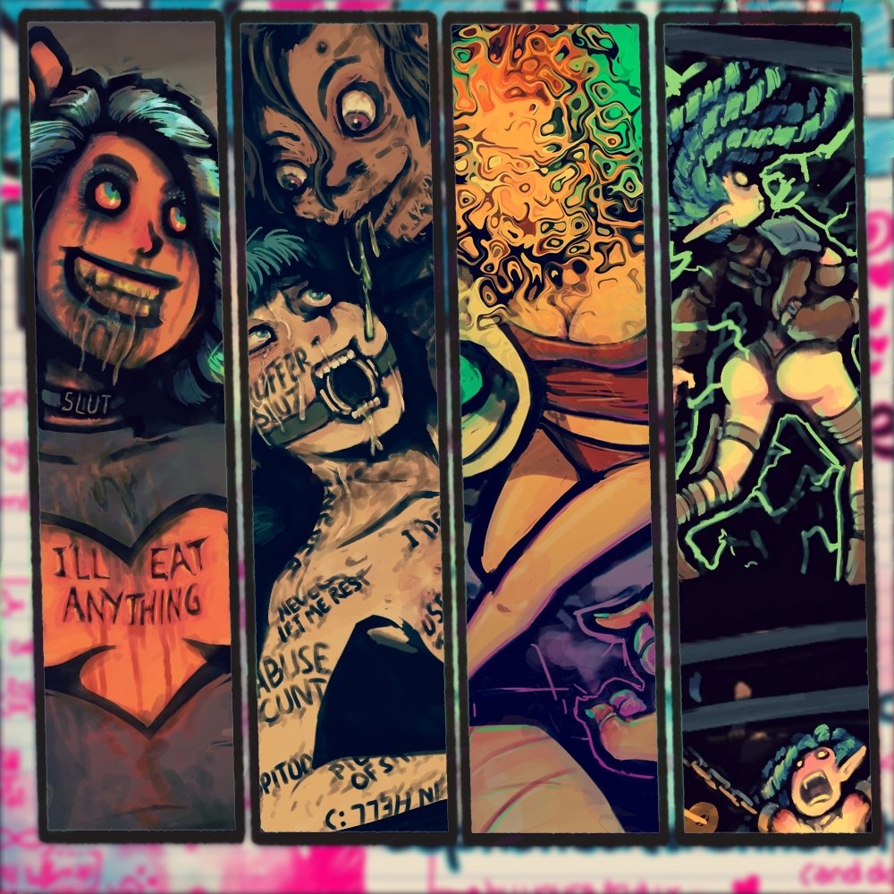 This series is NSFW, with particularly regular guro and violence. It features extreme and explicit fantasies and illustrations of depraved horniness and brutal scenarios that could (and should!) only exist in this crazy, twisted sci-fi fictional fantasy reality. Expect regular themes of sadism, permanence, blood, betrayal, and heartbreak. This isn’t a feelgood story. But it’s still cute.